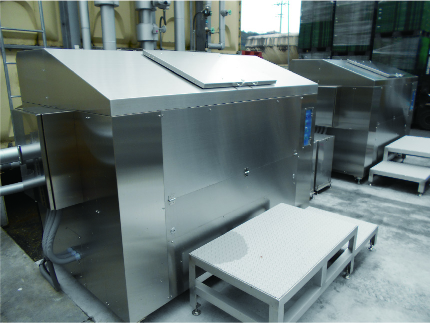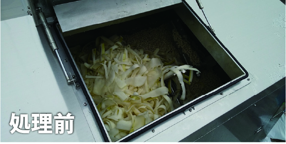 生ゴミを攪拌しながら微生物の分解で、大部分を水と炭酸ガスに分解する「消滅化方式」の処理機です。